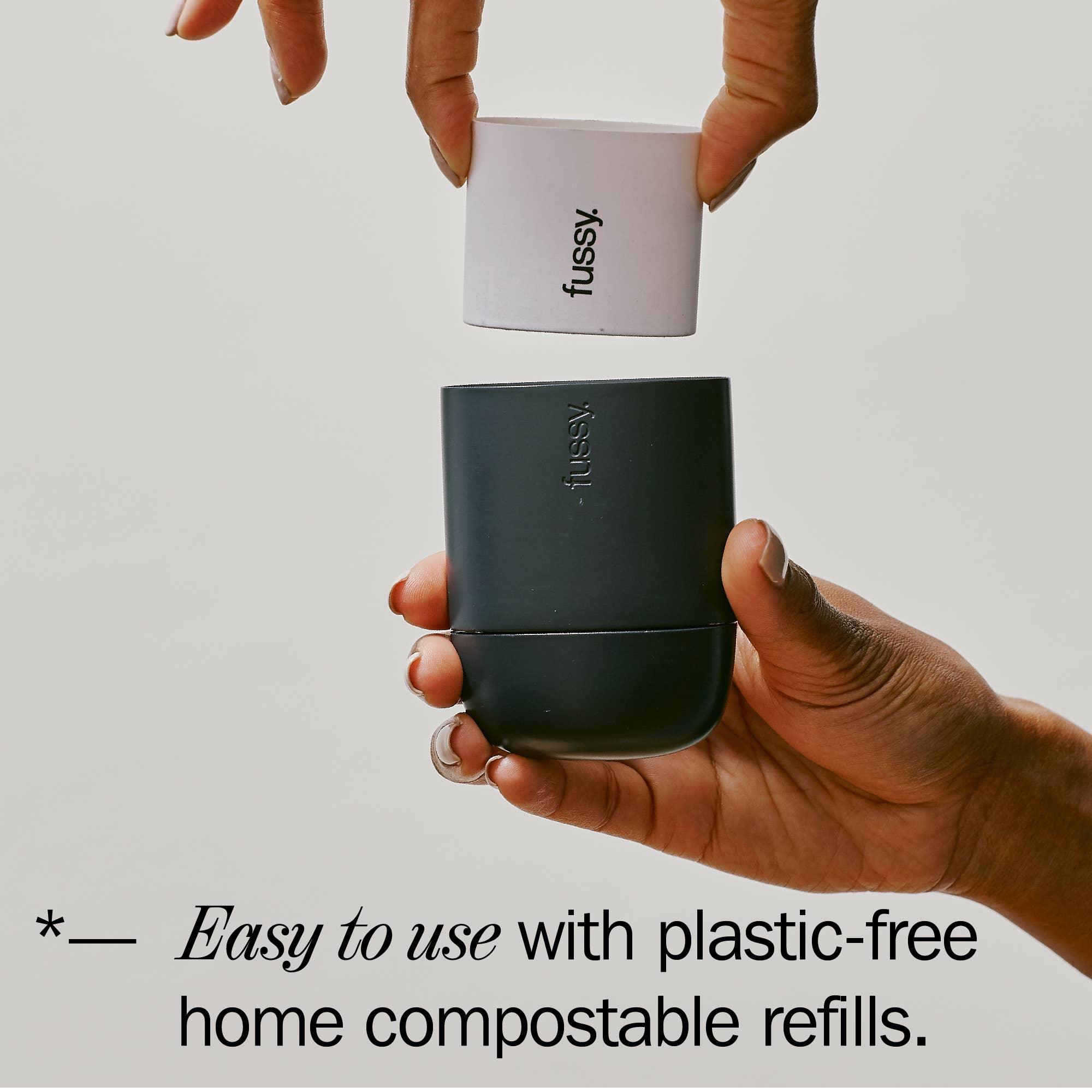 As seen on Dragons' Den. This deodorant contains only natural ingredients. It’s vegan and cruelty-free, contains no aluminium, parabens or sulphates and leaves no white marks or stains. Our unique probiotic deodorant is scientifically proven to neutralise odour-causing bacteria whilst soothing and moisturising your skin. Fussy makes it super simple to refill. One plastic-free refill will last between 4-6 weeks with daily application. Once done the refill will simply decompose in your garden or the bin.